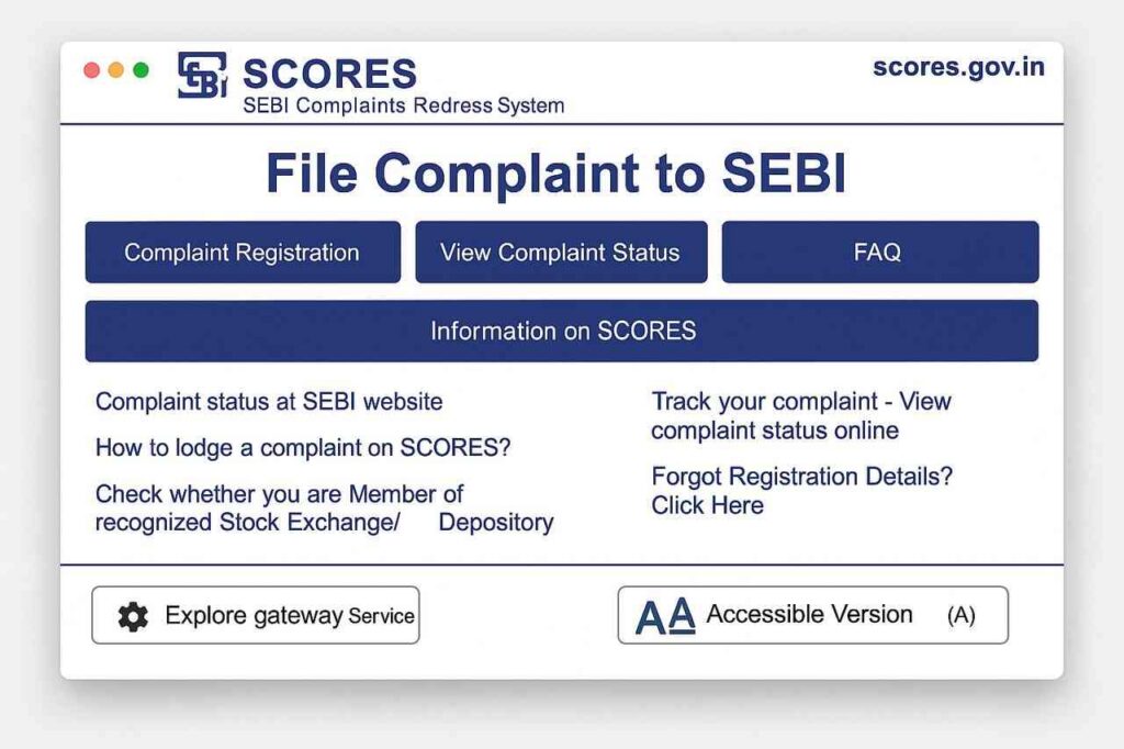I f you’ve been cheated by a broker, advisor, or scammer, here’s how you can complain : You can also escalate unresolved issues through SEBI Arbitration.